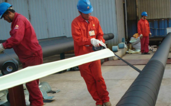 2.有的聚丙烯防腐膠帶制造商為降低產(chǎn)品成本,丁基橡膠改性石油瀝青膠粘劑中的橡膠成分含量低或是選用了熱塑丁苯橡膠(SBS),以及選用的石油瀝青的牌號小,其針汋度低,從而制成的膠粘劑耐溫性差,并易造成脆化脫膠。