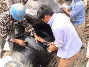 聚乙烯防腐膠帶具有優良的施工性能,適宜的施工溫度范圍廣,施工方便,方法多樣。既可工廠預制,也能現場預制;既可用纏繞機械施工,也可手工纏繞。